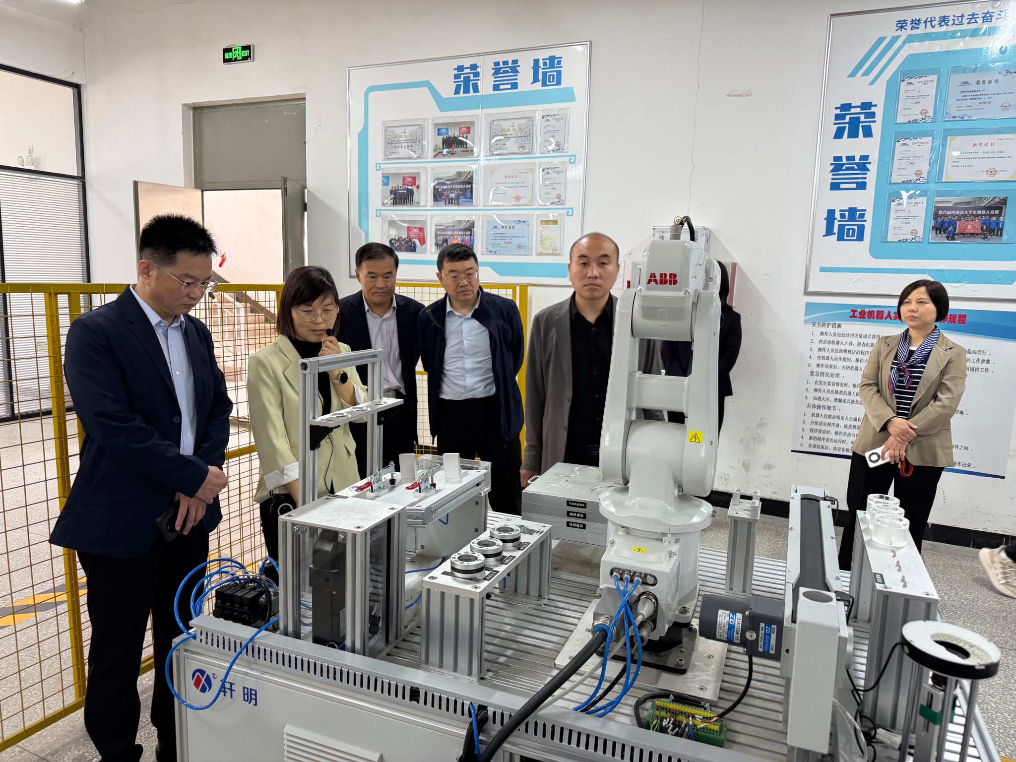 汇报会后,专家组实地考察了工业机器人专业实训场所、人工智能专业实训场所等基础设施。