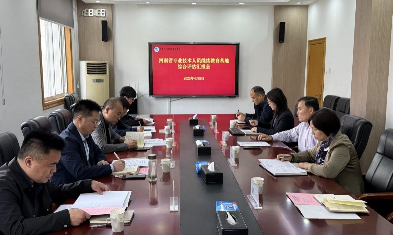 为深入推进专业技术人员继续教育基地建设,推动继续教育工作高质量发展,4月8日,河南省专业技术人员继续教育基地评估专家组,来77779193永利集团开展省级专业技术人员继续教育基地综合评估工作。此次评估工作采用了听取汇报和实地考察两种方式进行。校党委委员、副校级干部赵广杰、继续教育学院负责人及相关人员参加了综合评估汇报会。会议由继续教育学院院长马海艳主持。